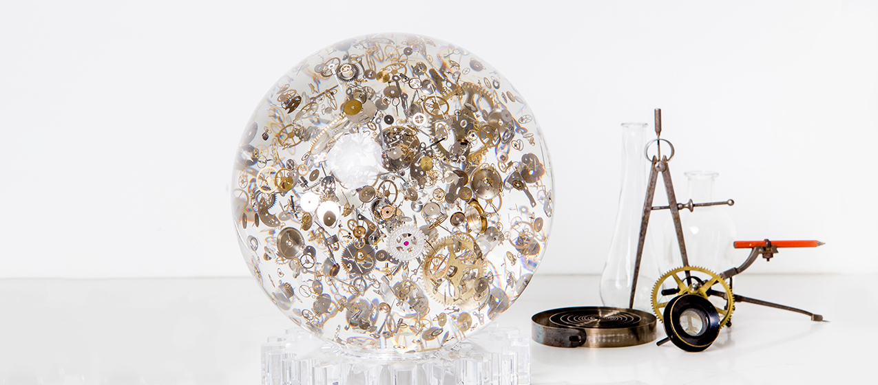 Шестеренки, барабаны, колеса, пружины, ходовые колеса, трибы, мосты и стрелки – каждая деталь часового механизма рассказывает свою удивительную историю. Мастера Berd Vaye заботливо восстанавливают часовые элементы, полируют их, а затем скрупулезно создают из них неповторимые композиции и заключают в форму из благородной, кристально чистой и ударопрочной смолы Lucite®.